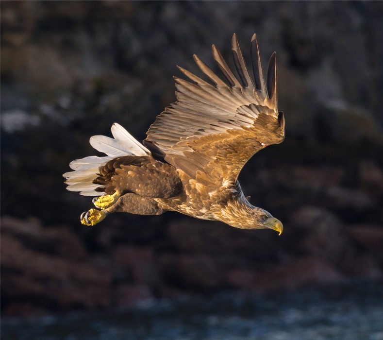 I like the Gaelic name, "iolar sùil na grèine" or "eagle of the eye of the sun". The white-tailed eagle is an intelligent hunter, and it often comes from out of the sun. In other words, it approaches its prey (the animals it kills) with the sun directly behind it, so that the eagle is invisible until it's very close.