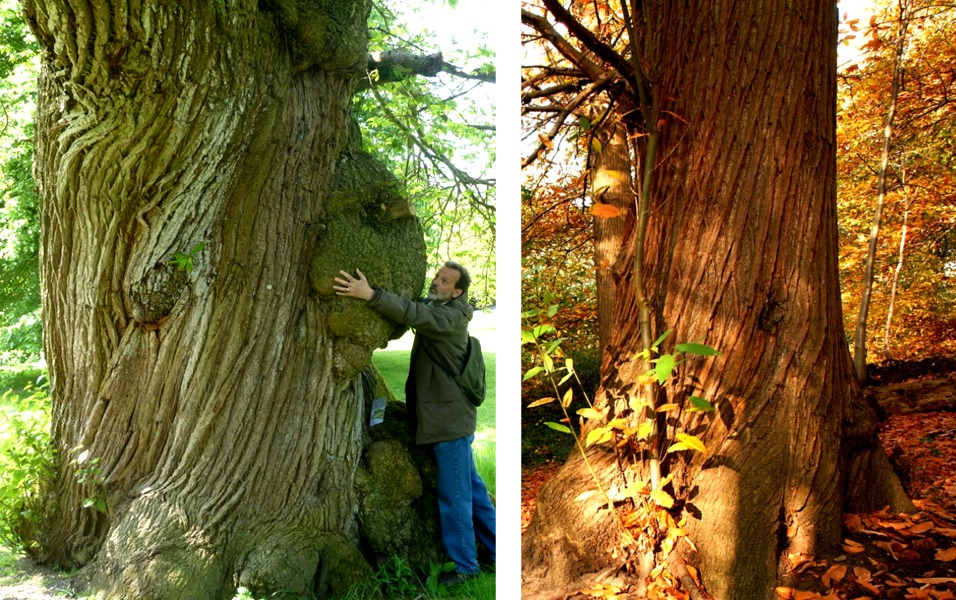 barkBark is the skin of a tree or a shrub. (A shrub is either a bush - see Bush, below - or a very small tree.) You can identify most trees by their bark, as well as by their leaves, flowers, fruit, location and general shape. That makes it possible to identify a deciduous tree in winter, when it has no leaves. A lot of trees have very characteristic bark. The bark of the London plane (Platanus x hispanica) has a unique colour, texture and shape. So does the giant redwood (Sequoiadendron giganteum). The sweet chestnut tree (Castanea sativa) has bark with deep vertical grooves, and the grooves are usually in a spiral for the bottom 2 metres of the tree - see the photos. Sweet chestnut tree images by Wendy Cutler, Creative Commons BY 2.0, and Brian Toward, public domain. |