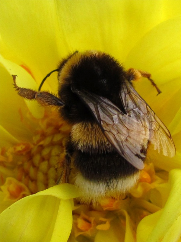 a beeThere are more than 20,000 species of bee in the world, with about 260 species in Britain. Surveys have found as many as 50 different species in a single London park. Bees can be very big; Wallace's giant bee (Megachile pluto from Indonesia) can be 40mm long, which is about as big as your thumb. They can also be very small. Four little sweat bees (Halictidae) became international celebrities in 2019 when a hospital in Taiwan removed them from a woman's eye. They had been under her eyelids for at least 24 hours, drinking her tear fluid, and they were still alive. When I think about bees, the first picture in my mind is a big, round, furry insect with black and orange stripes, that flies slowly and makes a loud buzzing noise. That's a bumblebee - see the photo. Honey bees are smaller, faster, less furry, and have black and amber stripes. They live in communities of thousands of bees. Most species of bee are solitary; they live alone. Solitary bees often make holes in the ground to live in. It's easy to see these holes in any area of short grass like a park or garden. Some bees are "solitary" because they like to live in individual holes, but they still like to live next to others, so you might see 40 or 50 little holes in the same bit of ground. Britain's largest bee is the buff-tailed bumblebee (Bombus terrestris, often 17mm long). The smallest UK species is the Small Scissor-Bee (Chelostoma campanularum, often only 4mm long). The males of this species sleep inside flowers. How cute is that... Not all bees produce honey, and only a few species live in large groups and produce enough honey to interest humans. However, bees are vital to gardeners, farmers and in fact to human life on this planet, because they are pollinators. They move pollen from one flower to another, and this gives us fruit and vegetables. And more flowers. Bumblebee image by Daniela, Creative Commons BY-SA 2.0. |