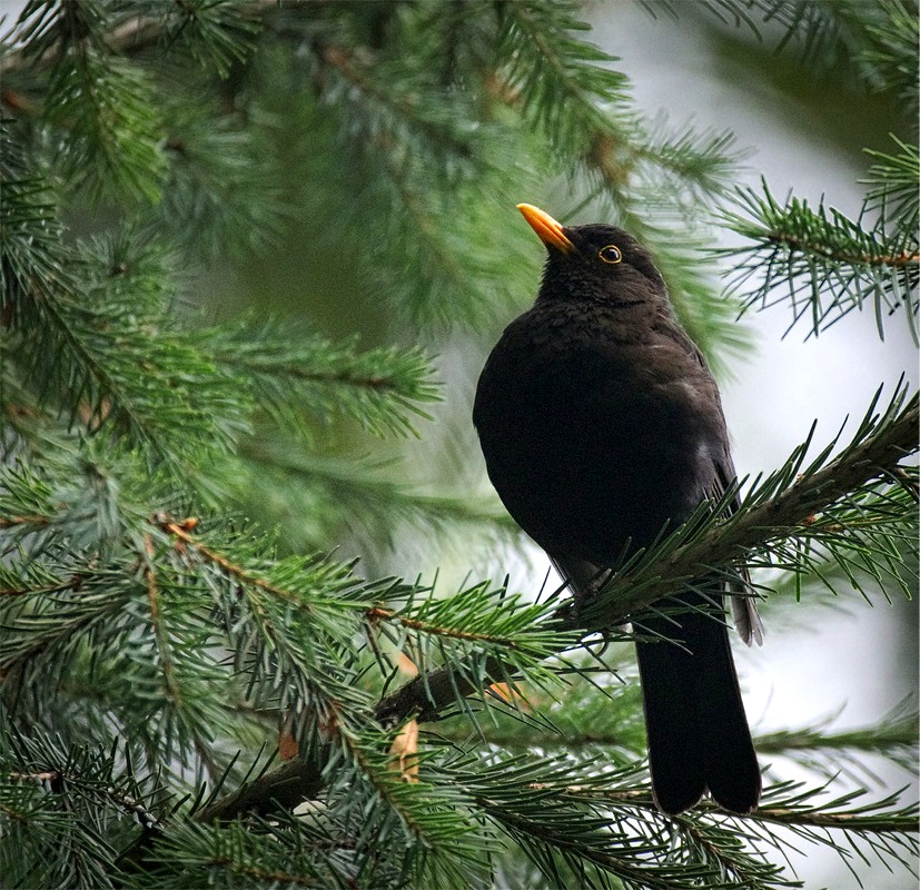 a blackbirdThe blackbird (Turdus merula) is a common bird in parks and gardens everywhere in Europe except for northern Scandinavia. They often visit garden bird tables, and they have a very nice song. The blackbird is a medium-sized bird, one of the thrush family. The male is black all over, with a yellow bill. The female is brown like most thrushes. Male blackbirds are strongly territorial. In other words, they don't like to have other male blackbirds in their territory. Image by Hedera.baltica, Creative Commons BY 2.0 |