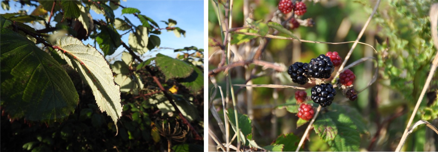 brambleThere are wild and domesticated plants in the Rubus family all over the world. They produce sweet fruit including raspberries and blackberries. Brambles, Rubus fruticosus, grow wild and produce lots of blackberries. In September you can often find ripe blackberries right next to ripe apples, which is perfect for Britain's favourite home-made dessert, apple & blackerry pie. Brambles grow everywhere in Europe, especially in hedges and as an understorey in woodland. They give dormice and many other animals a safe place to live because they make thick bushes with lots of sharp prickles, almost like roses If you have brambles in your garden, they can make a lot of work because they spread quickly and they can soon cover an area of land with vegetation 1 metre deep. They aren't easy to get rid of, and you have to wear strong leather gloves. If you cut them down to ground level, they soon grow back. It's best to wait for wet weather when the ground is soft, and pull them slowly out of the ground. If you pull them fast, they'll break, but if you pull very slowly, the roots will come out of the ground. Brambles image by Rob Mitchell, Creative Commons BY-SA 2.0 and blackberries by Rob on flickr, public domain. |