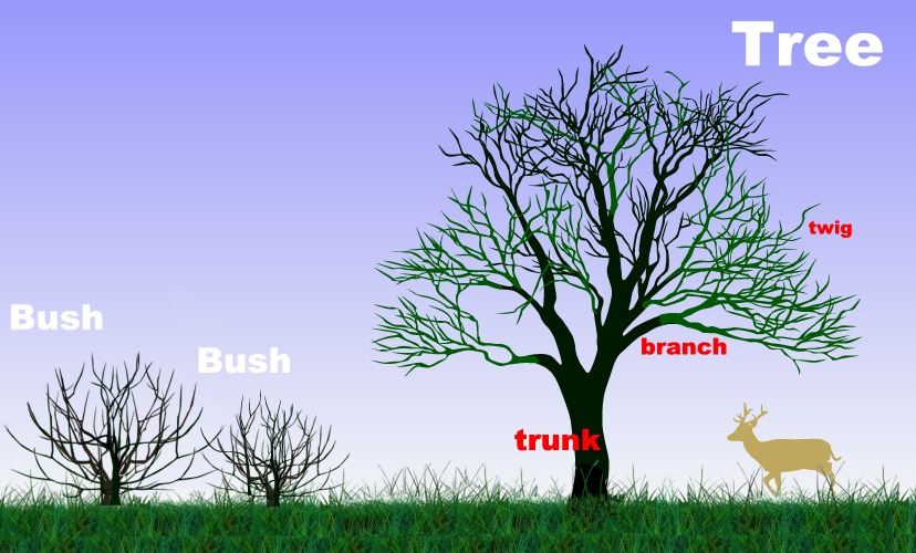 a bushA bush is like a small tree with no trunk. You can climb a tree, but you can't climb a bush. It's too small and its branches are too thin, so they're not strong enough to stand on. The branches are also too close together for a person to climb. A bush is usually some species of shrub, and a shrub is any species of plant with woody tissue that is usually a bush. (I think that's what they call a "circular definition"...). However, a shrub can get quite big if it has ideal living conditions. It can even become a small tree, big enough for a child to climb. Bushes and trees both make hard, strong, woody tissue. However, the typical tree has a single trunk like a column, with a lot of branches on top of that. A bush just has the branches and no trunk. If somebody has a big, dense beard or eyebrows, you can say these are "bushy"; and if an animal or person looks very healthy and happy, you can say it looks "bright-eyed and bushy-tailed". The squirrel is famous for having a bushy tail. Image by Nicholas of OnePlanet and Linguetic, Creative Commons BY 2.0. |